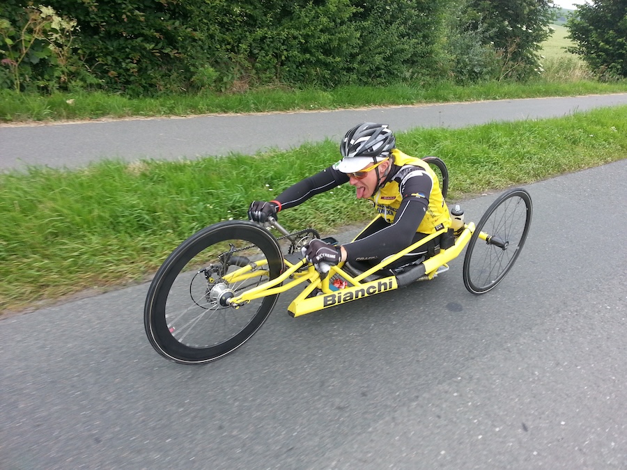 120 mil. 19 mil om dagen. Genom bergen i Belgien och upp för den ökända Mur de Huy – med 26 procents stigning. Och jag skulle göra det i armcykel, medan alla andra trampade med benen.