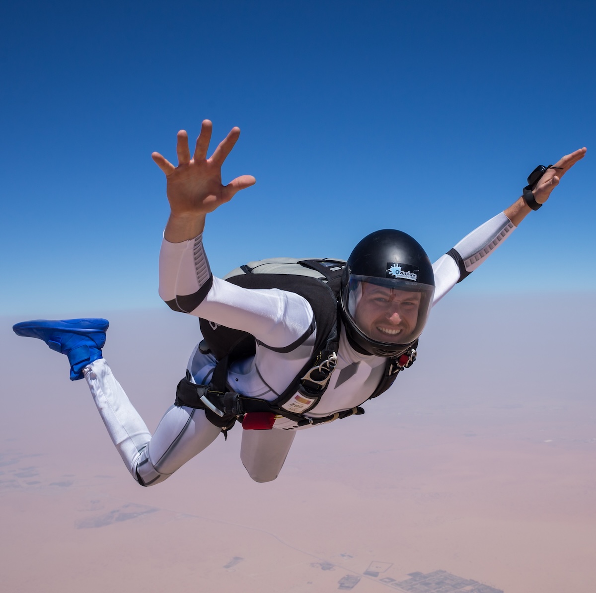 Det ena hoppet ledde till det andra. På bara sex dagar gjorde jag 26 hopp i Dubai och avslutade med min A-licens i fallskärmshoppning. Från att ha varit säker på att jag aldrig skulle kunna hoppa själv – till att bli licensierad fallskärmshoppare.