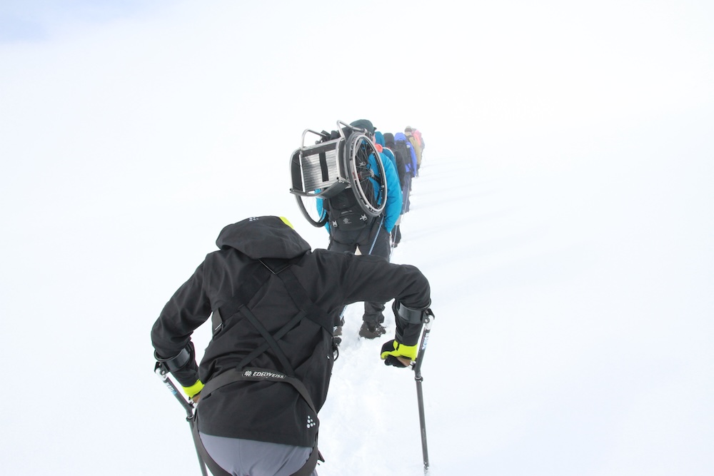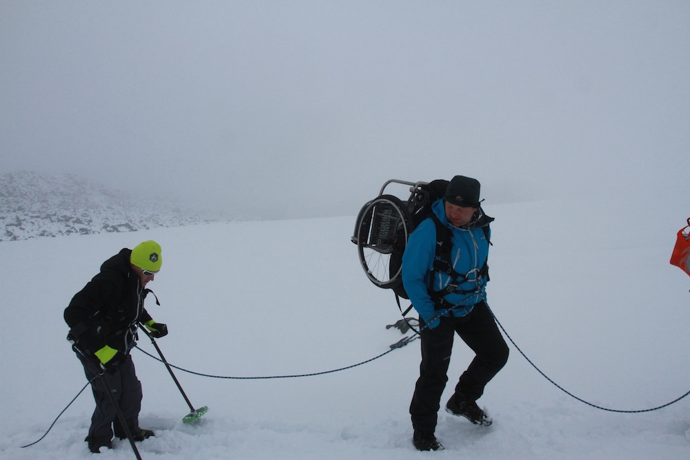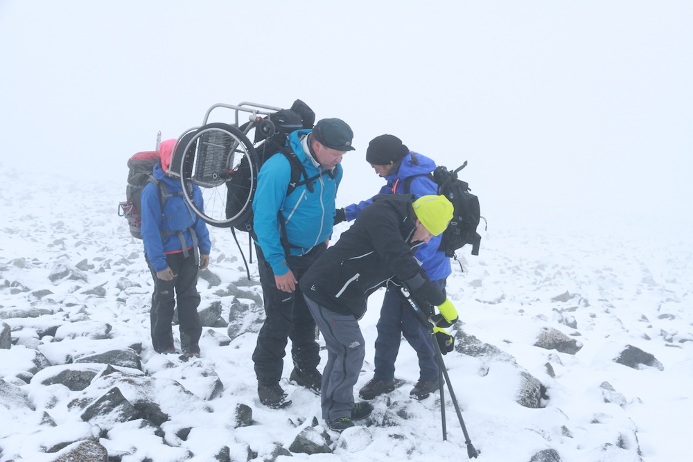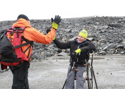 ”Fördelen med att göra fysiska utmaningar tillsammans med Aron är att ingen i teamet kan klaga på hur jobbigt det är. Det ger väldigt mycket perspektiv att se hur Aron släpar sig fram i bergsmiljö med rullstol och kryckor.” Maria, Proffice.